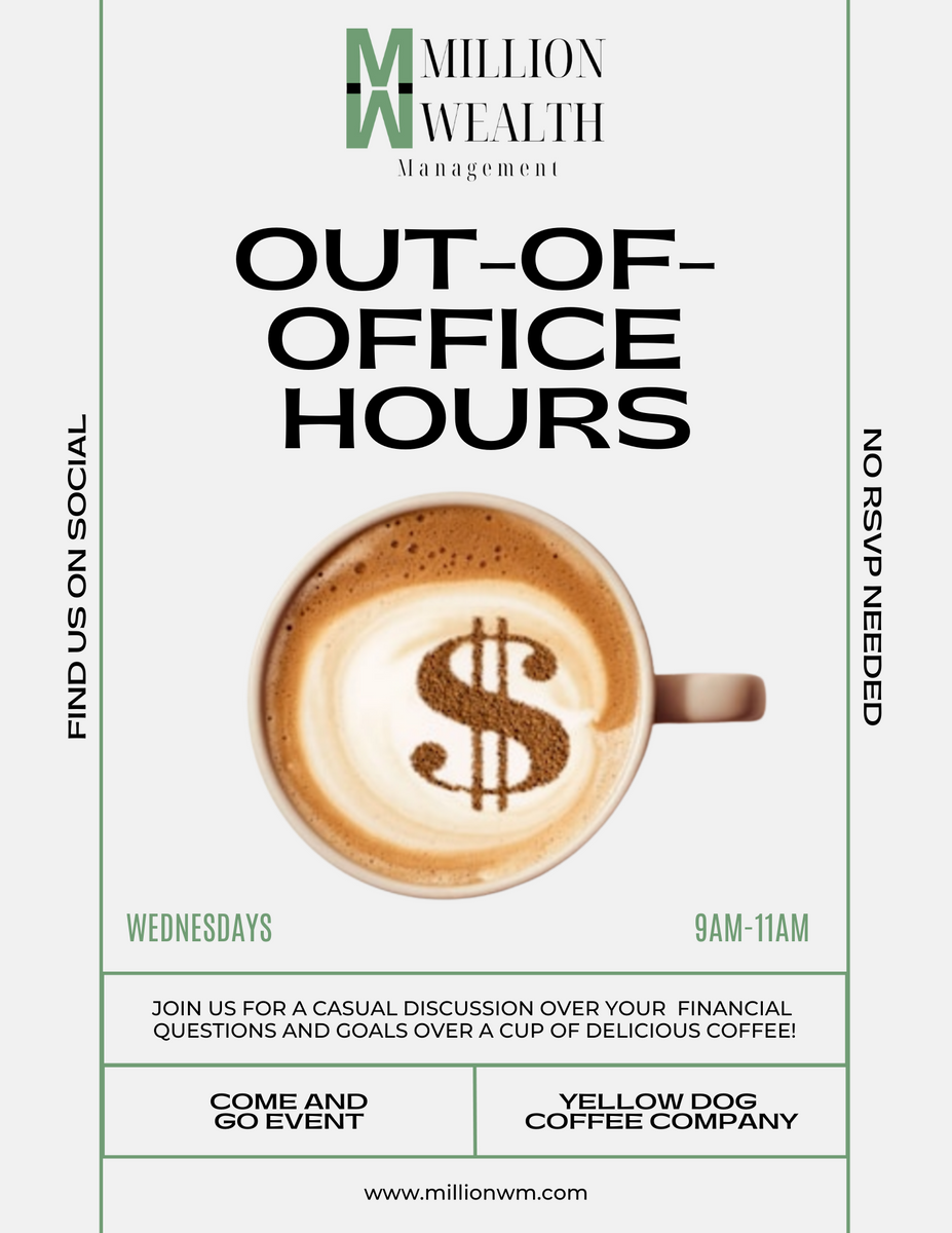 Each Wednesday, I am hosting office hours at Yellow Dog Coffee from 9-11 am to answer any and all questions you may have about financial planning and next steps without the pressure of a consultation. Just show up, and we will go from there.
